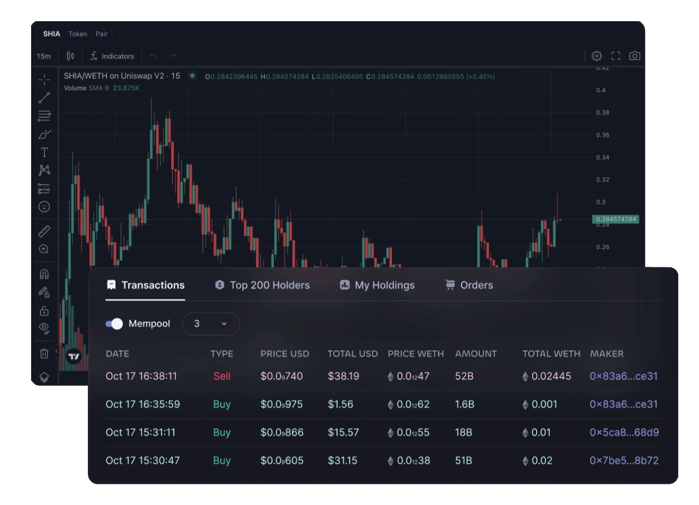 Track token performance, price movements, and portfolio activity in real time.