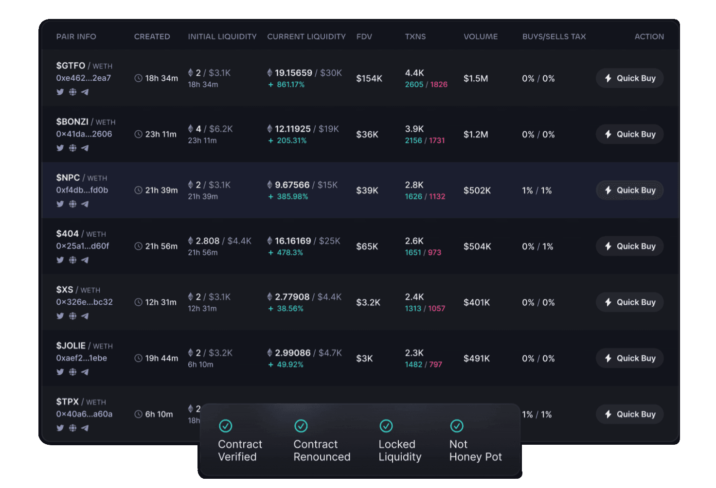 Identify potential risks with built-in indicators designed to help spot suspicious or unsafe tokens.
